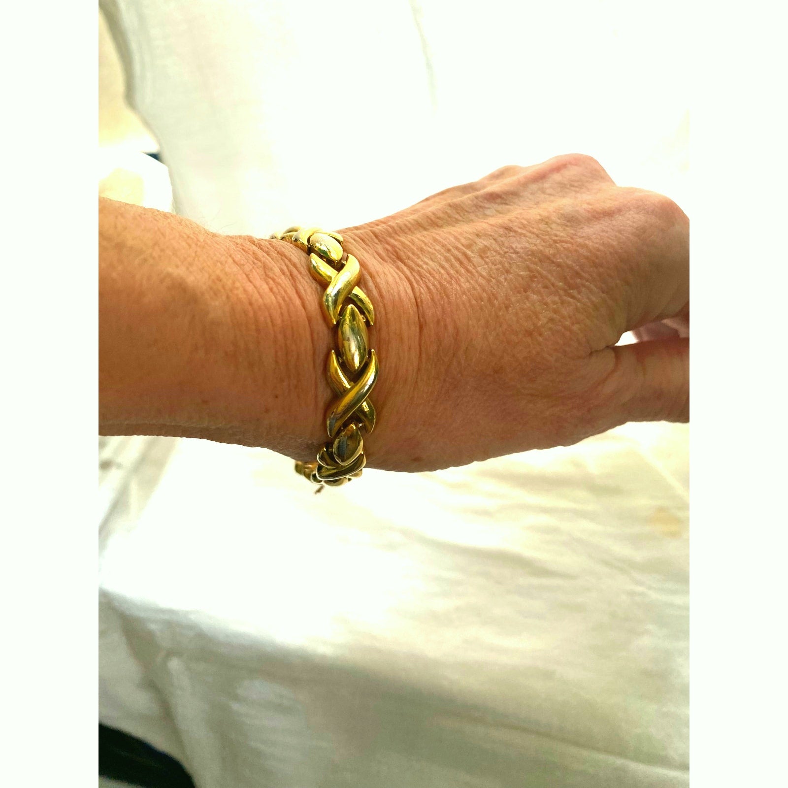 Add a touch of vintage glamour to your jewelry collection with this stunning 24K gold plated woven chain bracelet!